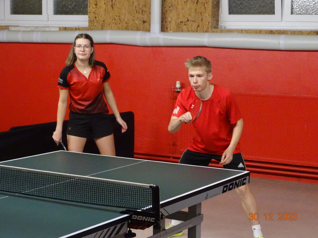 Das Mitternachts Mixed Turnier war wieder einer voller Erfolg und verlief reibungslos / ohne Verletzungen / Voll in den Erwartungen des Veranstalters. Der Ausgang war durchaus spannend und überraschend. Im letzten Spiel (parallellaufend, Uhrzeit ca. 2:30 Uhr) wurden die Plätze 1-5 entschieden. Durch die 0:3 Niederlage des topgesetzten Mixed Lenischmidt/Schäuffele gegen die erfahrenen Belagspieler Tran/Vogel im letzten Spiel und dem gleichzeitigen 3:0 Sieg von Romann/Schlag rutschte das Auricher Mixed aufgrund der besseren Satzbilanz auf den 1. Platz. Die Titelverteidiger Rouf/Off (Oberriexingen) schloss in diesem Jahr mit dem 4.Platz ab.  Somit sind Frank Romann / Daniela Schlag erstmals die Sieger des Mitternachts Mixed Turniers !